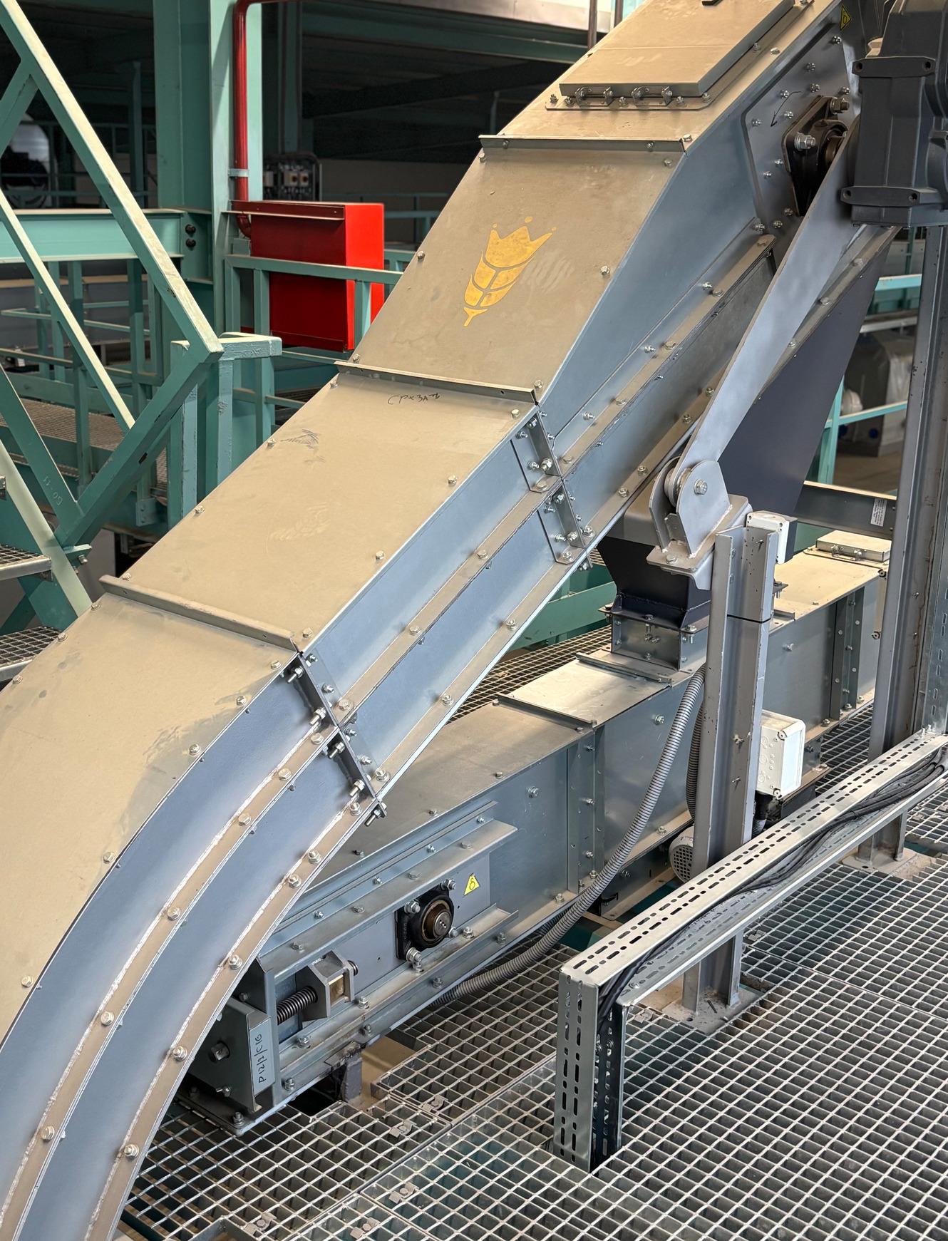 На момент початку робіт у цеху вже функціонувала одна технологічна лінія. Друга мала бути інтегрована в існуючу інфраструктуру без зупинки виробничого процесу, у середовищі з максимально щільною компоновкою, де критичним є кожен метр та кожна зміна напрямку транспортування. Для переміщення продукту застосували конвеєри спеціального виконання — так звані «гусячі шиї», які дозволяють змінювати напрямок руху матеріалу та обходити технологічні перешкоди без втрати продуктивності.