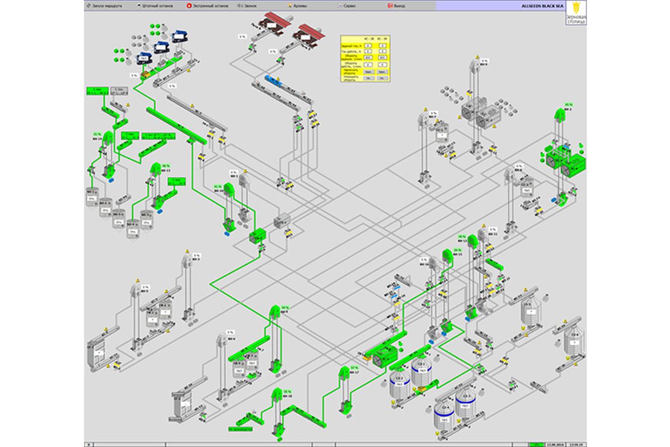 - Розробка проекту, виготовлення, монтаж та налагодження системи дистанційного автоматичного управління елеватором насіння, ділянки негранульованного лушпиння та елеватором гранульованого лушпиння та шроту. Система побудована за технологією розподіленої периферії на обладнанні компанії «SIEMENS».